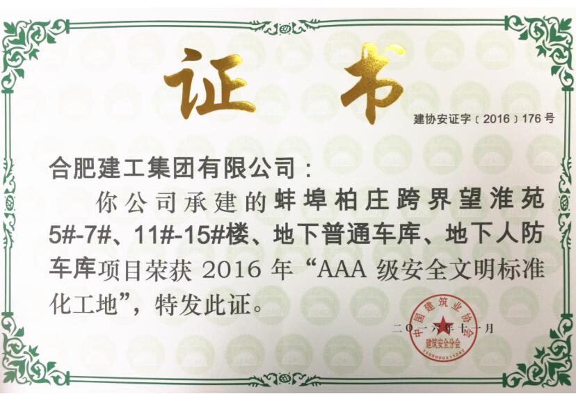 2016AAA安全文明标准化工地(蚌埠柏庄跨界望淮苑项目)