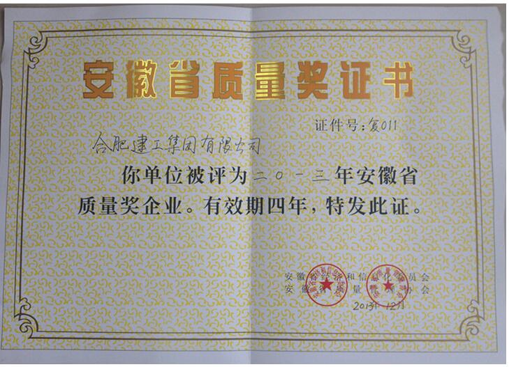 2013年度安徽省质量奖