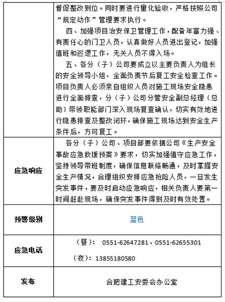 合肥建工预警信息——安全生产预警