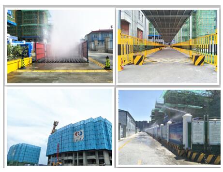 施工现场采取“围、洒、洗、盖”等措施并保持常态化管理,在大门内侧设置定型化车辆冲洗设施,设置在线扬尘监测设备,在外脚手架、围墙、主干道两侧、防护棚顶部等处设置喷淋降尘系统,配置移动雾炮降尘设备和移动洒水车,并安排专人每天定时对主干道及循环道路进行清扫,从多角度,对施工现场进行洒水降尘;对施工现场裸露土地部位采用绿化或覆盖,并洒水湿润;施工现场防护棚、安全通道、防坠落半径等均采用定型化、工具化防护设施,确保工程在施工安全生产过程中扬尘污染防治工作保持规范化、常态化,营造一个良好的施工作业环境。同时采用了附着升降脚手架技术和组合铝合金模板施工技术,具有环保节能、施工方便的功效,有较好的综合经济效益。