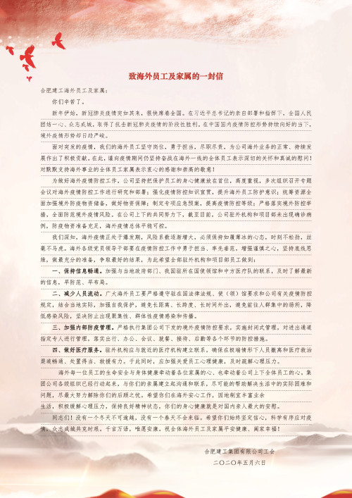 “疫情”见“情义”,关爱显真情 ——合肥建工工会电话慰问海外员工家属