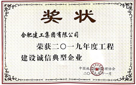 合肥建工获评“2019年度工程建设诚信典型企业”