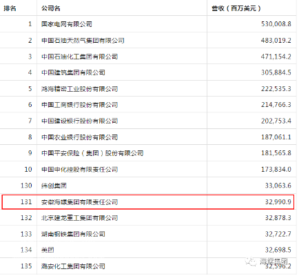 财富PlusAPP于北京时间7月25日发布了2023年《财富》中国500强排行榜。海螺集团以32,990.9百万美元的营收名列第131。