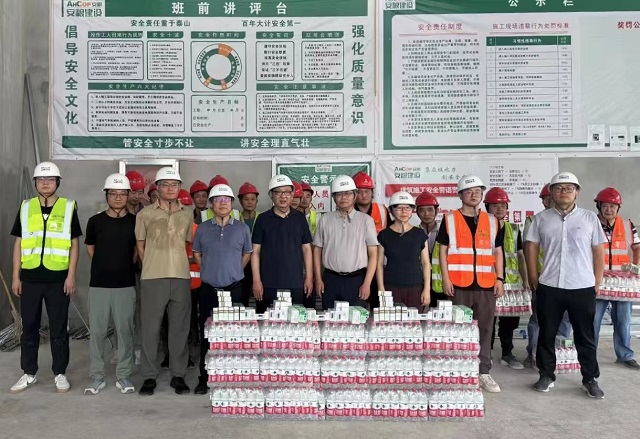 炎炎夏日,酷暑高温,为切实做好职工夏季防暑降温工作,用心用情关爱一线职工,8月2日,安粮集团工会开展“关爱职工,夏送清凉”活动,工会主席周洪带队来到安粮建设项目工地,对在高温条件下作业的职工进行慰问,为奋战在酷暑一线的工作人员送清凉、送关怀。
