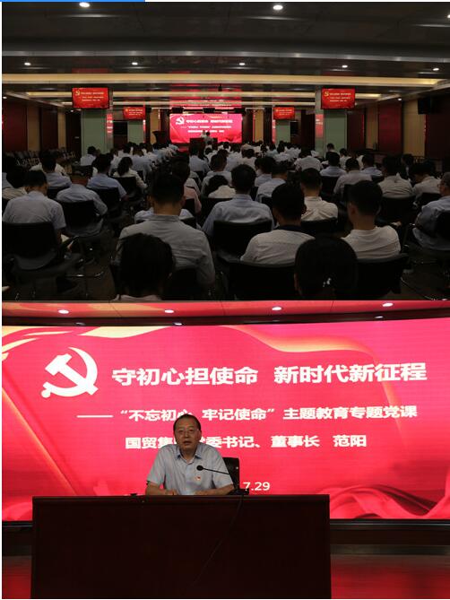 7月29日,国贸集团党委书记、董事长范阳到合肥建工讲授“不忘初心、牢记使命”主题教育专题党课。安粮集团党委和领导班子全体成员,合肥建工领导班子成员、中层干部、各分公司班子成员以及所有在肥党员同志共150余人参加了会议。
