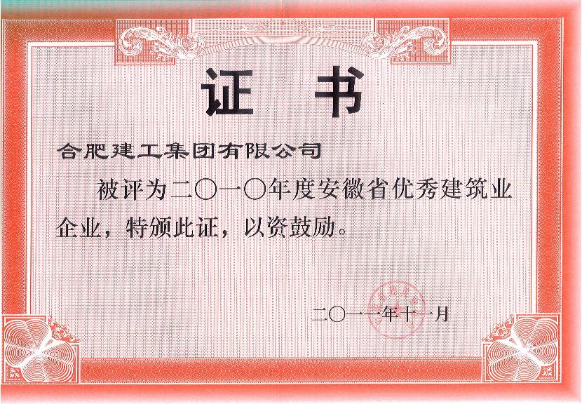 2010年度安徽省优秀建筑业企业